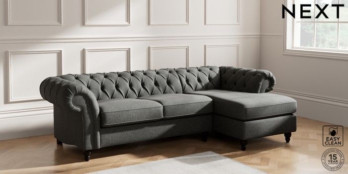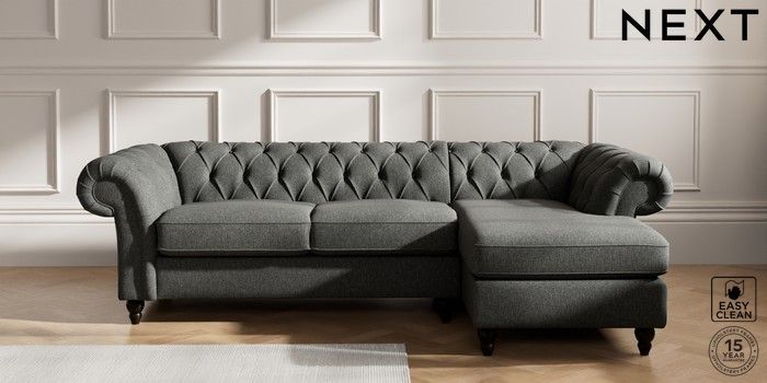 7.2.10 Gosford II Deep Sit Medium Sofa Chaise - Right Hand Tweedy Blend Easy Clean Charcoal Grey Low Turned - Dark | Made Click here to use our website with more accessibility support, for example screen readers