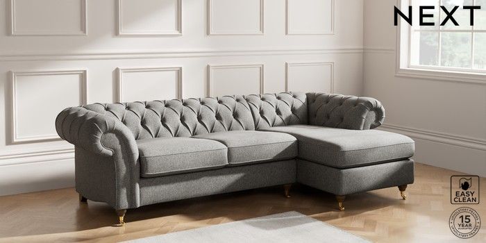 7.2.10 Gosford II Deep Sit Medium Sofa Chaise - Right Hand Tweedy Blend Easy Clean Dark Grey Castor - Mid | Made Click here to use our website with more accessibility support, for example screen readers