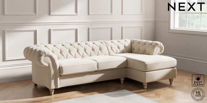 7.2.10 Gosford II Deep Sit Medium Sofa Chaise - Right Hand Tweedy Blend Easy Clean Oyster Low Turned - Light | Made Click here to use our website with more accessibility support, for example screen readers