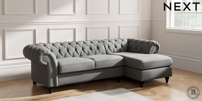 7.2.10 Gosford II Deep Sit Medium Sofa Chaise - Right Hand Tweedy Chenille Dark Grey Low Turned - Dark | Made Click here to use our website with more accessibility support, for example screen readers