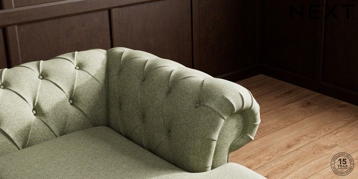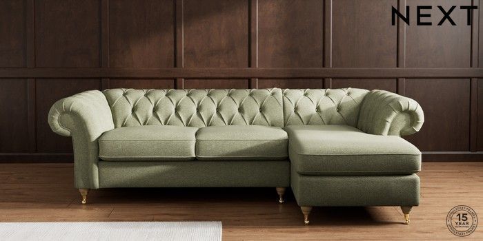 7.2.10 Gosford II Deep Sit Medium Sofa Chaise - Right Hand Tweedy Chenille Mid Moss Green Castor - Light | Made Click here to use our website with more accessibility support, for example screen readers