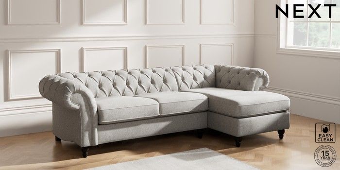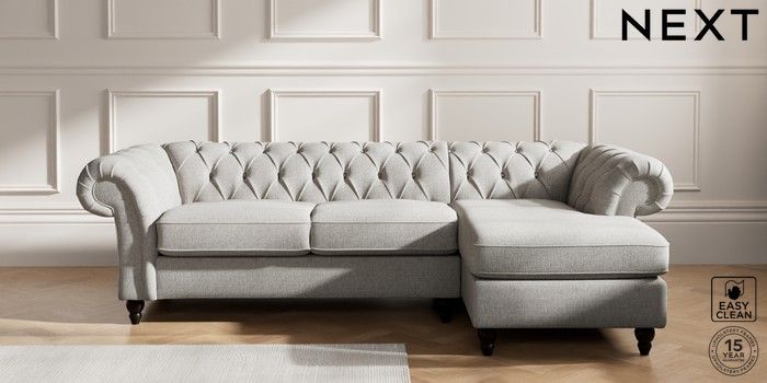 7.2.10 Gosford II Deep Sit Medium Sofa Chaise - Right Hand Woven Chenille Easy Clean Light Grey Low Turned - Dark | Made Click here to use our website with more accessibility support, for example screen readers