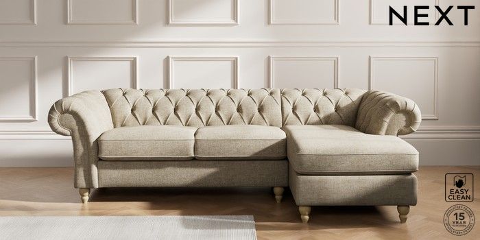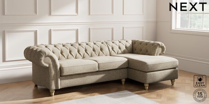 7.2.10 Gosford II Deep Sit Medium Sofa Chaise - Right Hand Woven Chenille Easy Clean Mid Natural Low Turned - Light | Made Click here to use our website with more accessibility support, for example screen readers