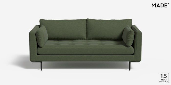 7.2.4 Harlow by Made 2 Seater Sofa Made Weave Dark Moss Green Skinny - Black | Made Click here to use our website with more accessibility support, for example screen readers