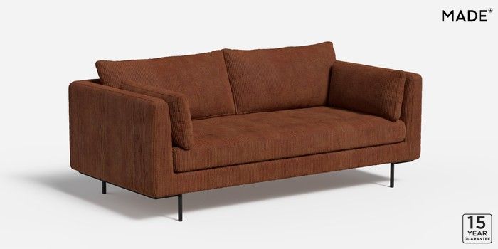 6.12.1 Harlow by Made 2 Seater Sofa Matt Corduroy Nutmeg Orange Skinny - Black | Made Click here to use our website with more accessibility support, for example screen readers