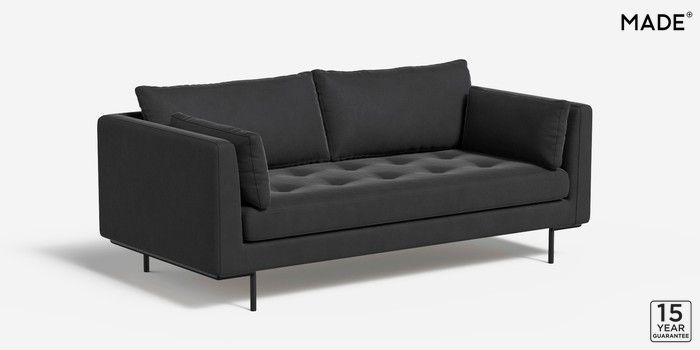 6.12.1 Harlow by Made 2 Seater Sofa Matt Velvet Easy Clean Charcoal Grey Skinny - Black | Made Click here to use our website with more accessibility support, for example screen readers