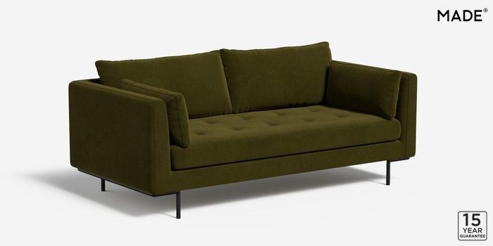 6.12.1 Harlow by Made 2 Seater Sofa Matt Velvet Easy Clean Deep Olive Green Skinny - Black | Made Click here to use our website with more accessibility support, for example screen readers
