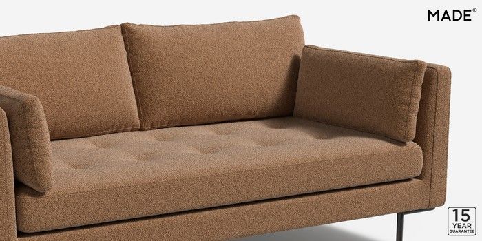 7.2.4 Harlow by Made 2 Seater Sofa Soft Touch Boucle Caramel Natural Skinny - Black | Made Click here to use our website with more accessibility support, for example screen readers