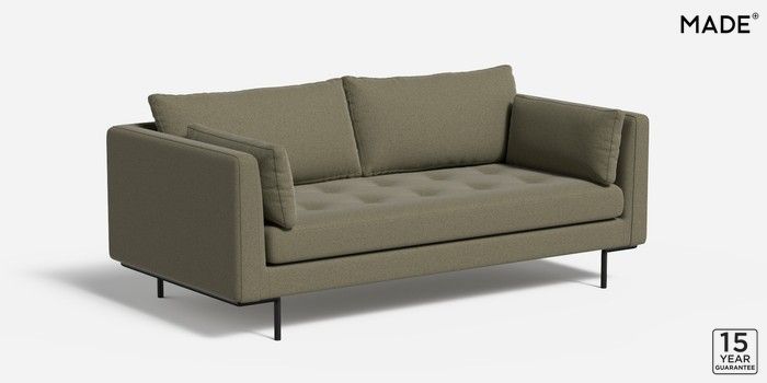 6.12.1 Harlow by Made 2 Seater Sofa Textured Slub Weave Soft Olive Green Skinny - Black | Made Click here to use our website with more accessibility support, for example screen readers