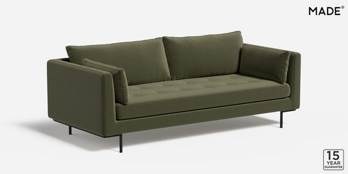 6.12.1 Harlow by Made 3 Seater Small Sofa Matt Corduroy Fennel Green Skinny - Black | Made Click here to use our website with more accessibility support, for example screen readers