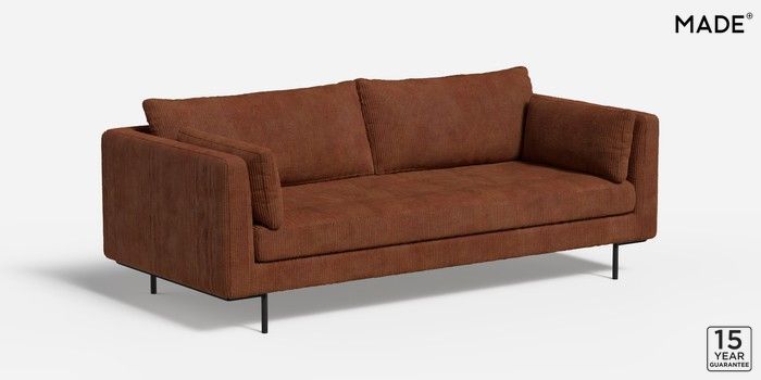 6.12.1 Harlow by Made 3 Seater Small Sofa Matt Corduroy Nutmeg Orange Skinny - Black | Made Click here to use our website with more accessibility support, for example screen readers