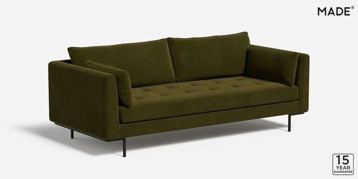 6.12.1 Harlow by Made 3 Seater Small Sofa Matt Velvet Easy Clean Deep Olive Green Skinny - Black | Made Click here to use our website with more accessibility support, for example screen readers