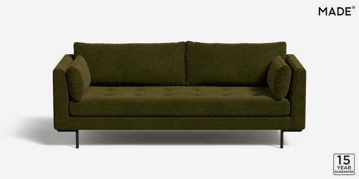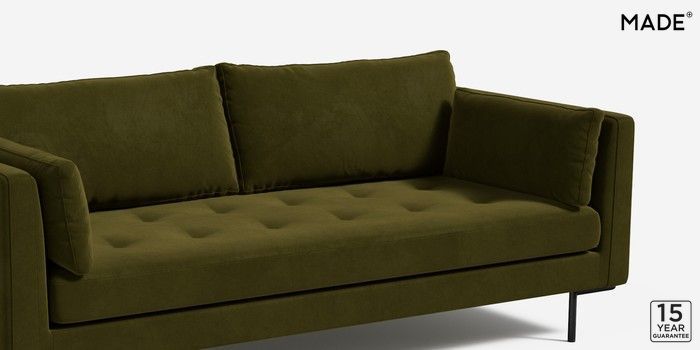 7.2.4 Harlow by Made 3 Seater Small Sofa Matt Velvet Easy Clean Deep Olive Green Skinny - Black | Made Click here to use our website with more accessibility support, for example screen readers