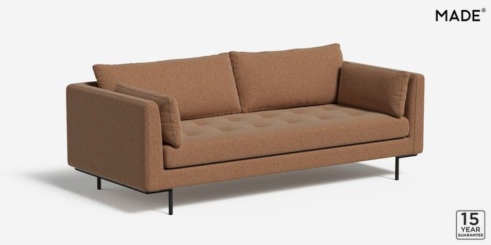 6.12.1 Harlow by Made 3 Seater Small Sofa Soft Chenille Easy Clean Dark Caramel Natural Skinny - Black | Made Click here to use our website with more accessibility support, for example screen readers