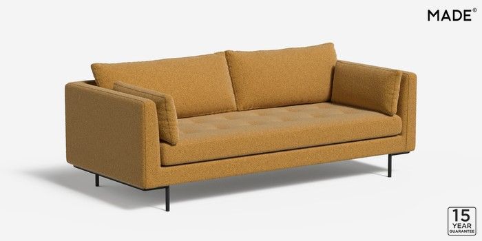 6.12.1 Harlow by Made 3 Seater Small Sofa Soft Touch Boucle Ochre Yellow Skinny - Black | Made Click here to use our website with more accessibility support, for example screen readers