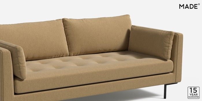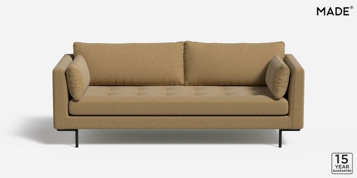 7.2.10 Harlow by Made 3 Seater Small Sofa Textured Slub Weave Caramel Natural Skinny - Black | Made Click here to use our website with more accessibility support, for example screen readers