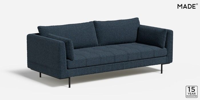 6.12.1 Harlow by Made 3 Seater Small Sofa Tonal Boucle Marl Navy Blue Skinny - Black | Made Click here to use our website with more accessibility support, for example screen readers