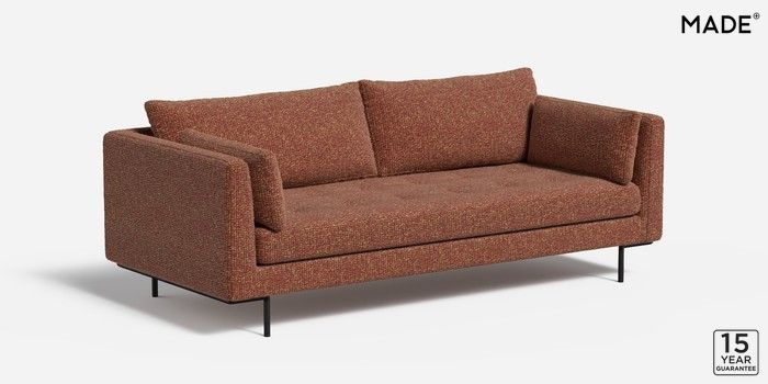 6.12.1 Harlow by Made 3 Seater Small Sofa Tonal Boucle Maroon Red and Light Caramel Skinny - Black | Made Click here to use our website with more accessibility support, for example screen readers