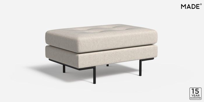 6.12.1 Harlow by Made Footstool Textured Slub Weave Light Natural Skinny - Black | Made Click here to use our website with more accessibility support, for example screen readers