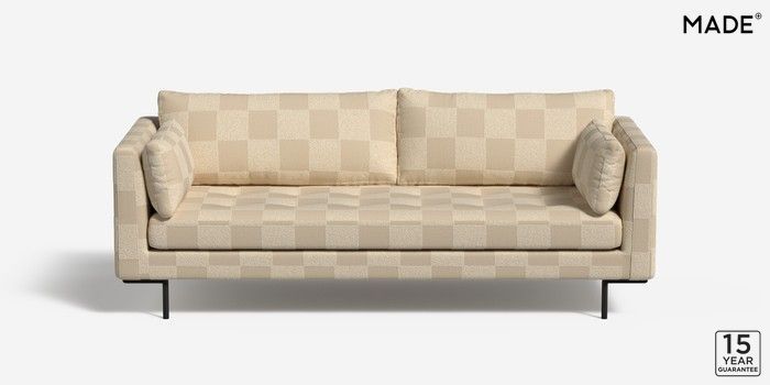 6.12.1 Harlow by Made 3 Seater Small Sofa Blenets Check by Harlequin Oatmeal Natural Skinny - Black | Made Click here to use our website with more accessibility support, for example screen readers