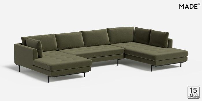 6.12.1 Harlow by Made Large U-Shaped Corner Sofa Matt Corduroy Fennel Green Skinny - Black | Made Click here to use our website with more accessibility support, for example screen readers