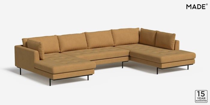 6.12.1 Harlow by Made Large U-Shaped Corner Sofa Matt Velvet Easy Clean Caramel Natural Skinny - Black | Made Click here to use our website with more accessibility support, for example screen readers