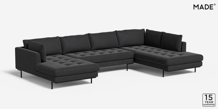 6.12.1 Harlow by Made Large U-Shaped Corner Sofa Matt Velvet Easy Clean Charcoal Grey Skinny - Black | Made Click here to use our website with more accessibility support, for example screen readers