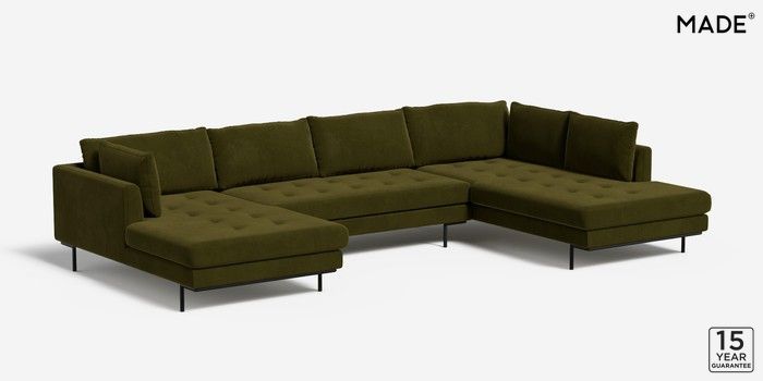 6.12.1 Harlow by Made Large U-Shaped Corner Sofa Matt Velvet Easy Clean Deep Olive Green Skinny - Black | Made Click here to use our website with more accessibility support, for example screen readers