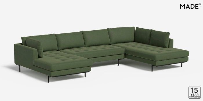 6.12.1 Harlow by Made Large U-Shaped Corner Sofa Matt Velvet Easy Clean Grass Green Skinny - Black | Made Click here to use our website with more accessibility support, for example screen readers