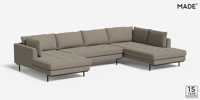 6.12.1 Harlow by Made Large U-Shaped Corner Sofa Soft Chenille Easy Clean Pebble Grey Skinny - Black | Made Click here to use our website with more accessibility support, for example screen readers