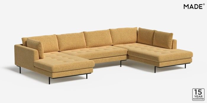 6.12.1 Harlow by Made Large U-Shaped Corner Sofa Soft Chenille Easy Clean Yellow Ochre Skinny - Black | Made Click here to use our website with more accessibility support, for example screen readers