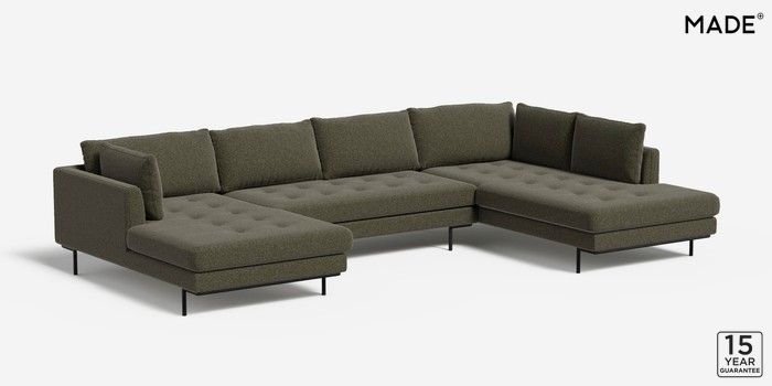 6.12.1 Harlow by Made Large U-Shaped Corner Sofa Soft Touch Boucle Forest Green Skinny - Black | Made Click here to use our website with more accessibility support, for example screen readers