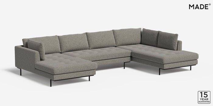 6.12.1 Harlow by Made Large U-Shaped Corner Sofa Soft Touch Boucle Grey Marl Skinny - Black | Made Click here to use our website with more accessibility support, for example screen readers