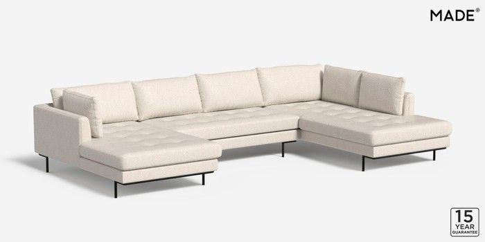 6.12.1 Harlow by Made Large U-Shaped Corner Sofa Soft Touch Boucle Off White Skinny - Black | Made Click here to use our website with more accessibility support, for example screen readers