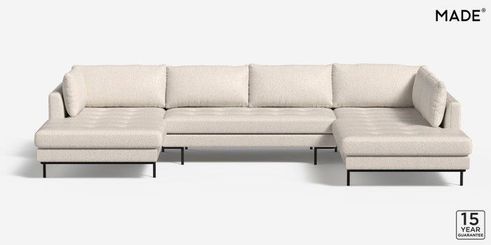 7.0.3 Harlow by Made Large U-Shaped Corner Sofa Soft Touch Boucle Off White Skinny - Black | Made Click here to use our website with more accessibility support, for example screen readers