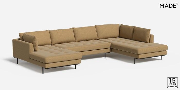 6.12.1 Harlow by Made Large U-Shaped Corner Sofa Textured Slub Weave Caramel Natural Skinny - Black | Made Click here to use our website with more accessibility support, for example screen readers
