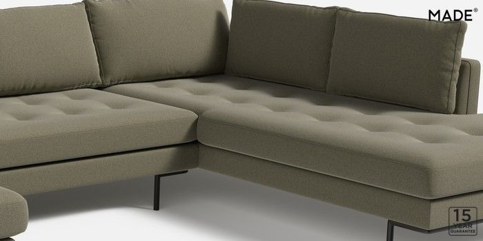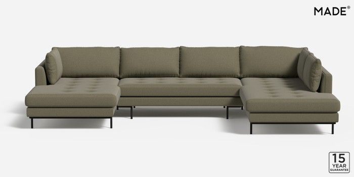 7.2.10 Harlow by Made Large U-Shaped Corner Sofa Textured Slub Weave Soft Olive Green Skinny - Black | Made Click here to use our website with more accessibility support, for example screen readers