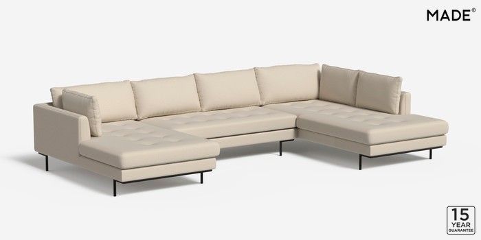 6.12.1 Harlow by Made Large U-Shaped Corner Sofa Textured Woven Natural Skinny - Black | Made Click here to use our website with more accessibility support, for example screen readers