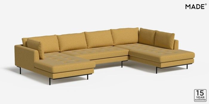 6.12.1 Harlow by Made Large U-Shaped Corner Sofa Textured Woven Warm Ochre Skinny - Black | Made Click here to use our website with more accessibility support, for example screen readers
