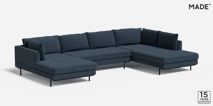 6.12.1 Harlow by Made Large U-Shaped Corner Sofa Tonal Boucle Marl Navy Blue Skinny - Black | Made Click here to use our website with more accessibility support, for example screen readers