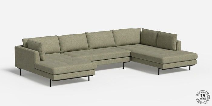 7.2.4 Harlow by Made Large U-Shaped Corner Sofa Woven Fleck Sage Green Skinny - Black | Made Click here to use our website with more accessibility support, for example screen readers