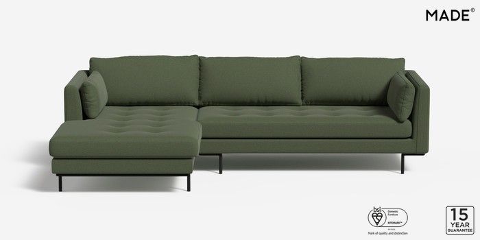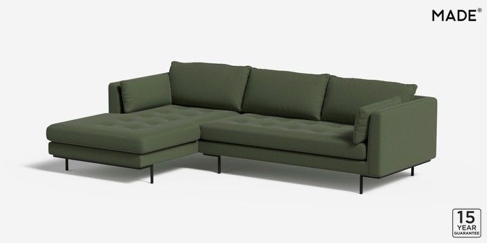6.12.1 Harlow by Made Medium Sofa Chaise - Left Hand Made Weave Dark Moss Green Skinny - Black | Made Click here to use our website with more accessibility support, for example screen readers