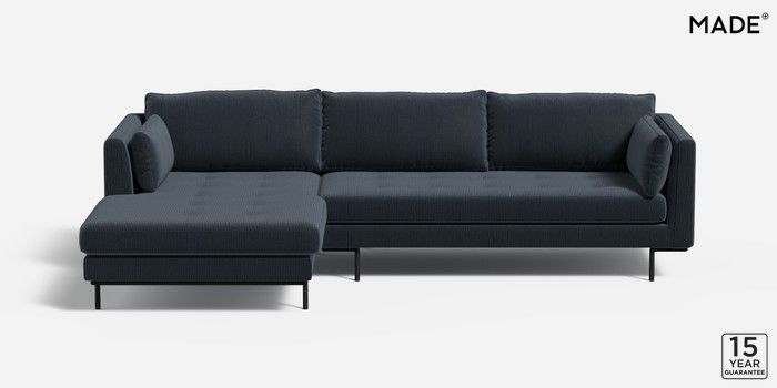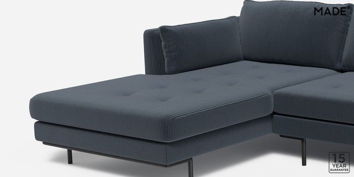 7.2.4 Harlow by Made Medium Sofa Chaise - Left Hand Matt Corduroy Midnight Blue Skinny - Black | Made Click here to use our website with more accessibility support, for example screen readers