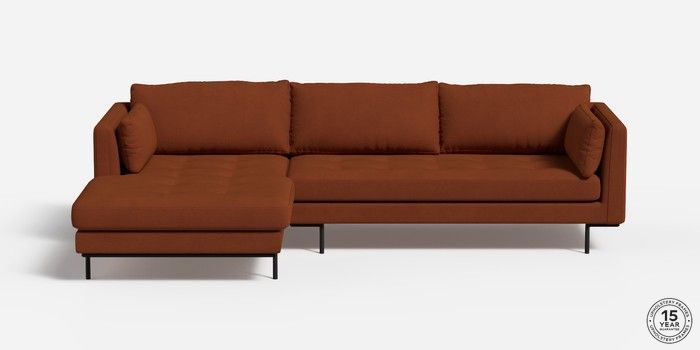 6.12.1 Harlow by Made Medium Sofa Chaise - Left Hand Matt Velvet Easy Clean Cinnamon Brown Skinny - Black | Made Click here to use our website with more accessibility support, for example screen readers