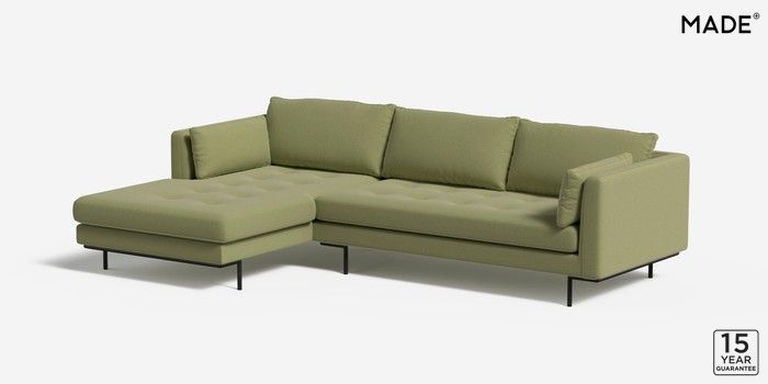 6.12.1 Harlow by Made Medium Sofa Chaise - Left Hand Soft Chenille Easy Clean Green Tea Skinny - Black | Made Click here to use our website with more accessibility support, for example screen readers