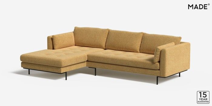 6.12.1 Harlow by Made Medium Sofa Chaise - Left Hand Soft Chenille Easy Clean Yellow Ochre Skinny - Black | Made Click here to use our website with more accessibility support, for example screen readers