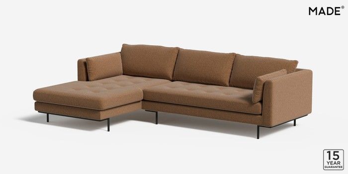 6.12.1 Harlow by Made Medium Sofa Chaise - Left Hand Soft Touch Boucle Caramel Natural Skinny - Black | Made Click here to use our website with more accessibility support, for example screen readers