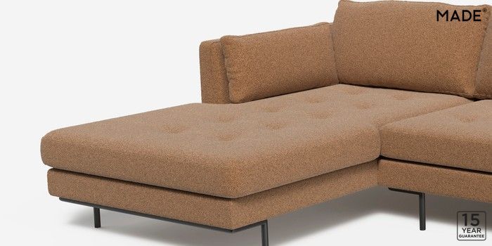 7.2.4 Harlow by Made Medium Sofa Chaise - Left Hand Soft Touch Boucle Caramel Natural Skinny - Black | Made Click here to use our website with more accessibility support, for example screen readers