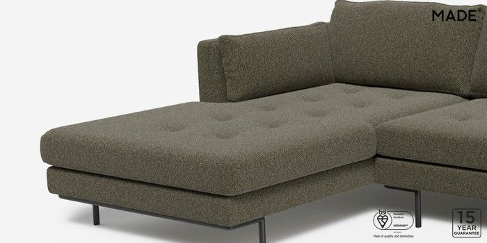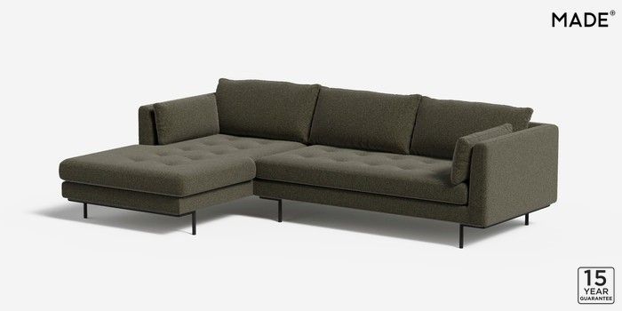 6.12.1 Harlow by Made Medium Sofa Chaise - Left Hand Soft Touch Boucle Forest Green Skinny - Black | Made Click here to use our website with more accessibility support, for example screen readers