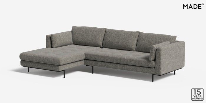 6.12.1 Harlow by Made Medium Sofa Chaise - Left Hand Soft Touch Boucle Grey Marl Skinny - Black | Made Click here to use our website with more accessibility support, for example screen readers